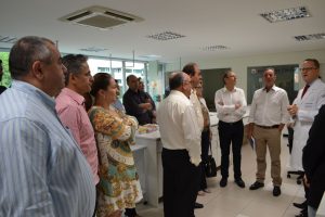O presidente do HSVP, Décio Ramos de Lima, superintendente executivo do HSVP, Ilário De David, superintendente médico e de pós-graduação do HSVP e diretor executivo do Instituto Dr. Alberto Kaemmerer e o oncologista e diretor adjunto do Instituto do Câncer do HSVP Dr. Rodrigo Villarroel falaram sobre o novo conceito no tratamento do câncer e da estrutura do instituto que integra as áreas de oncologia clínica, cirúrgica, oncopediatria, hematologia, pesquisa clínica e radioterapia, além de esclarecer dúvidas dos prefeitos e secretários.