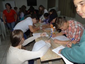A equipe técnica do CRAS realizou na noite de 20 de abril, uma oficina com as crianças e adolescentes do turno da tarde do Serviço de Convivência e Fortalecimento de Vínculos para Crianças e Adolescentes, juntamente com seus pais. Esses encontros são realizados mensalmente e têm como objetivo principal a criação de vínculos dentro da família.
