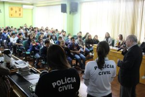 Neste ano o Seminário foi dividido em dois momentos, sendo um deles durante todo o dia na Câmara Municipal de Vereadores com alunos da Rede Municipal de Ensino e a noite voltado a comunidade com a participação massiva de Professores Municipais. Ambos os momentos foram coordenados pelas escrivãs de polícia Loren Kircher de Vasconcelos e Bruna Silva.