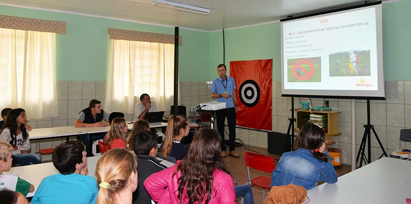 De uma forma divertida e educativa os alunos prestigiaram o teatro baseado no Projeto Escola no Campo e uma palestra sobre o que foi trabalhado em sala de aula pelos alunos, dando ênfase no que diz respeito a utilização correta de defensivos agrícolas e a importância da utilização de EPIs.