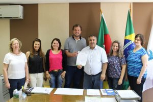 Estiveram presentes a Secretária Assessora Pedagógica Mara Gotz, a Secretária de Administração e Planejamento Noeli Machry, a Secretária de Habitação Nara Adams, a Procuradora Jurídica Patrícia Huppes e a Engenheira responsável pela obra Vanderlete Fries.