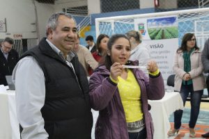 Também estiveram presentes: Presidente da Câmara de Vereadores Marina Fatima Trennepohl Crestani e demais vereadores; Presidente do Conselho Municipal de Habitação Maiquel Junges e demais membros e imprensa.