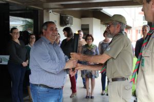 Na tarde de quinta-feira (30), a centelha do fogo simbólico chegou ao Município de Não-Me-Toque sendo entregue na Prefeitura pelos Escoteiros Guardiões da Nascente. O Prefeito Pedro Paulo Falcão da Rosa, Secretários Municipais e servidores estiveram recepcionando a centelha que desde o ano de 1937 percorre todo o Estado com o objetivo de difundir temas de interesse nacional e da sociedade, pois a chama representa o saber e o conhecimento.