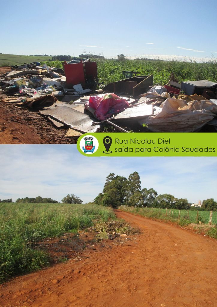 Durante o mês de junho, o mês dedicado a ações que visam à conscientização da comunidade sobre a importância da preservação do meio ambiente, realizou-se o mapeamento dos pontos de descarte irregular de lixo em todo o perímetro do Município, totalizando 68 pontos. Após esse trabalho executado pela equipe de meio ambiente, a empresa Santina Fantoni Hoscheidt – ME (Reciclagem Santo Expedito) foi contratada para recolher o material desses pontos, fazer a triagem e encaminhar para reciclagem os materiais que são reaproveitáveis e para aterro licenciado os demais materiais.