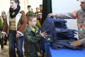 Na recepção das escolas os alunos receberam uma mochila contendo caderno em papel reciclado para cada criança, que contém atividades didáticas, dicas de segurança e de cuidados com o ambiente e, também uma caneta personalizada da cooperativa, 01 lápis de escrever, um jogo de memória e um imã de geladeira.