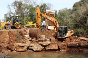 Iniciou esta semana a construção da estrutura provisória que vai restabelecer o tráfego na estrada intermunicipal que liga Não-Me-Toque a Colorado e é fundamental para os produtores rurais da localidade de Posse São Miguel.