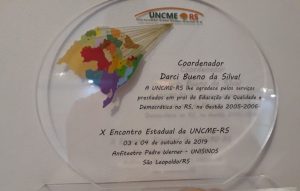 “Foi um período de intensos debates e discussões quanto a organização dos Sistemas Municipais de Ensino e a reorganização do CME, bem como financiamento da Educação, já que estava finalizando o período de validade da Lei do FUNDEF, havendo a necessidade de se discutir um novo formato de financiamento para educação que abrangesse todo a educação básica. Na nossa gestão descentralizamos a realização dos Encontros Estaduais da UNCME/RS, que até então aconteciam somente na grande Porto Alegre, como também, em parceria com MEC, através do Programa Pró-Conselho, intensificamos a formação de conselheiros através das regionais. Procuramos também a aproximação com o Tribunal de Contas do Estado do Rio Grande do Sul, a fim de capacitar os conselheiros quanto ao seu papel fiscalizador dos recursos públicos da educação. Muito da minha formação pessoal e qualificação profissional se deu a partir do convívio com a realidade dos Conselhos Municipais de Educação”, declarou professor Darci Bueno.