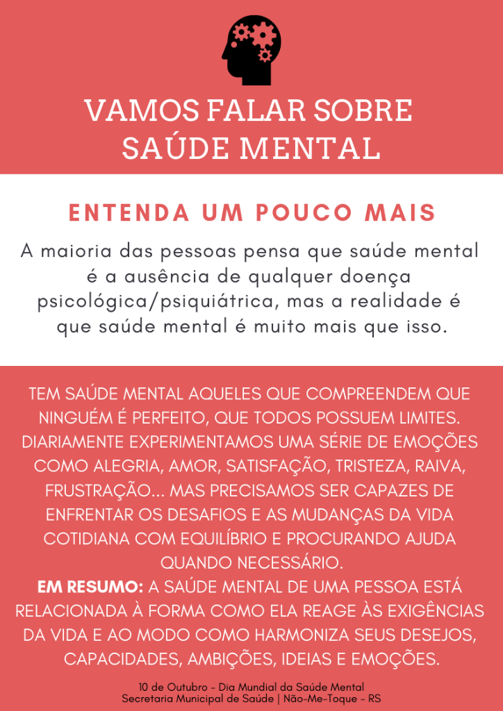 O Dia Mundial da Saúde Mental comemorado no dia 10 de outubro foi instituído em 1992, pela Federação Mundial de Saúde Mental.