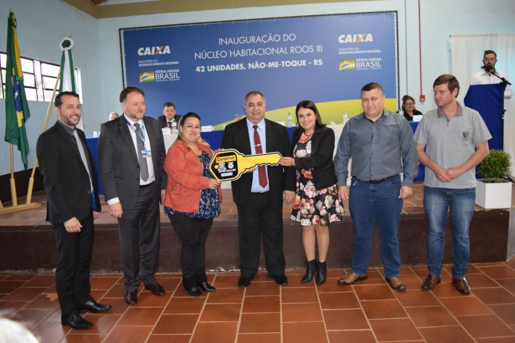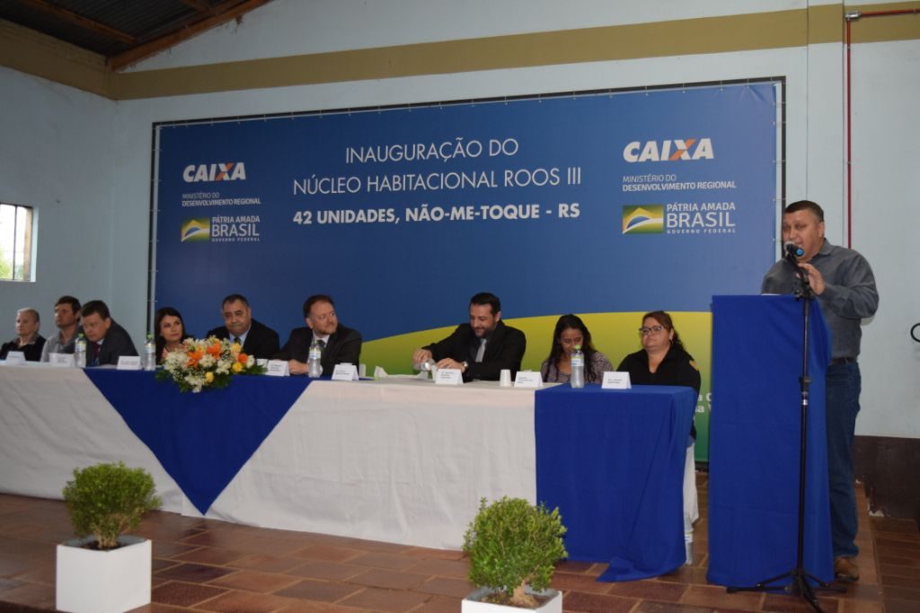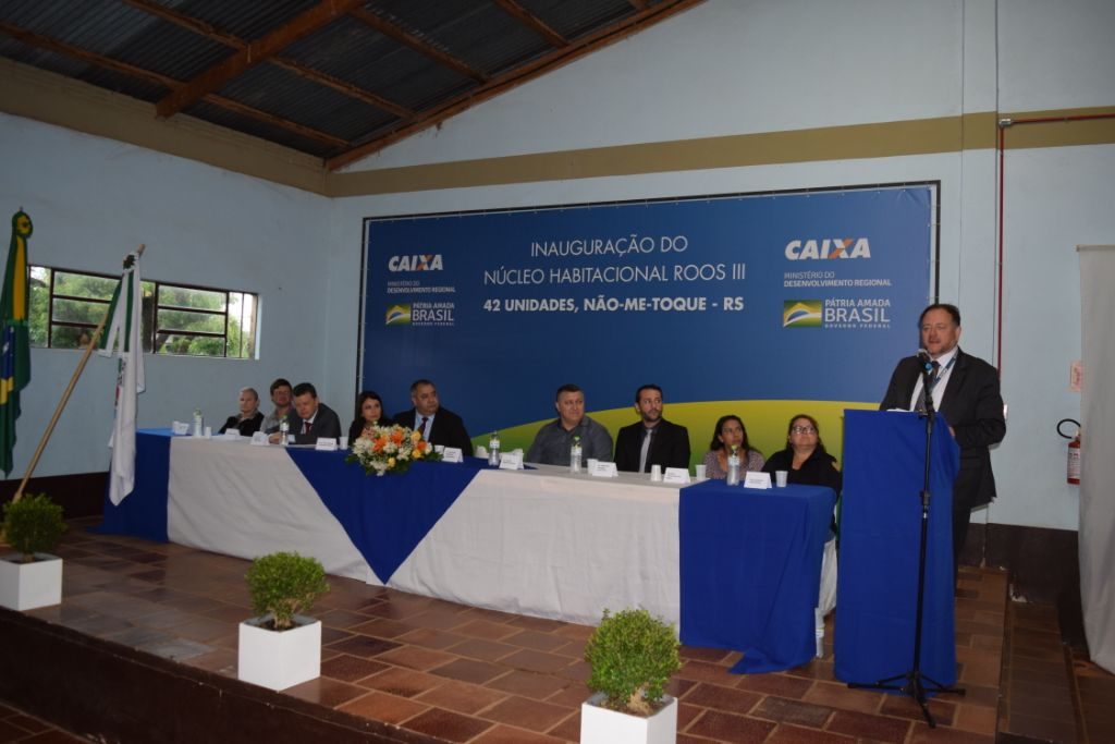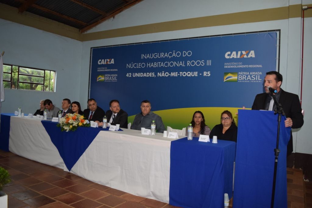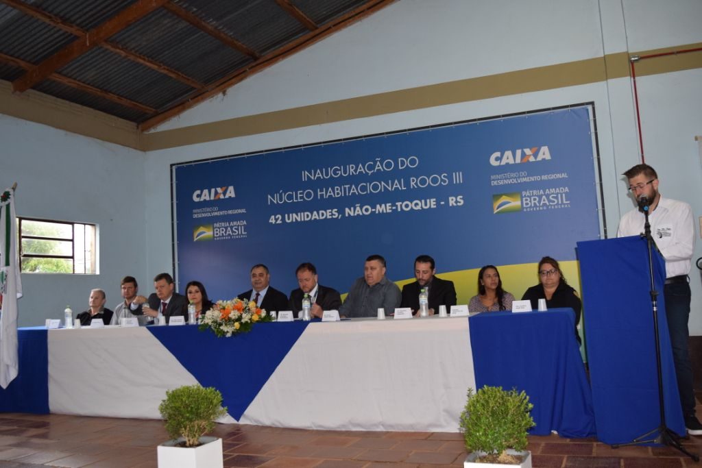 Presenças: Prefeito Municipal, Pedro Paulo Falcão da Rosa; Superintendente Regional da Superintendência Norte Gaúcho, Eduardo Francisco Rockenbach; Secretária Municipal de Habitação, Nara Marisa Carvalho Adams e demais Secretários; Presidente da Câmara Municipal de Vereadores, Carlos Alberto Bacher e demais Vereadores; Superintendente Executivo da Plataforma de Habitação Norte Gaúcho, Lucio Roberto Hackenhaar; Presidente do Conselho Municipal de Habitação, Maiquel Jung e demais membros; Diretor da Empresa Construir Construtora, Marialvo Gnoatto Cazarotto; Ex-Prefeitos Teodora Berta Souilljee Lütkemeyer e Armando Carlos Roos; Gerente da Gerência Executiva de Habitação Passo Fundo, Claudio Teixeira; Gerente Geral – Caixa Econômica Federal – Agência Não-Me-Toque, João Carlos Silva de Almeida, Pastor Alex Zierman da Igreja Luterana, imprensa escrita e falada.