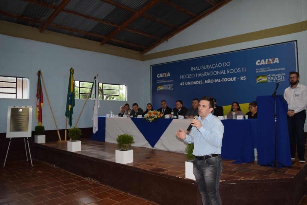 O Prefeito Pedro Paulo mencionou a alegria da Administração em fazer parte da realização do sonho destas famílias. “Hoje é um dia que entra para a história, não só de Não-Me-Toque, mas para as 42 famílias que no dia de hoje, vão receber a chave da sua casa própria, chave que representam a concretização de um sonho que começou lá em 2017. Entregamos hoje um Loteamento completo, com 42 unidades habitacionais além de toda infraestrutura necessária para assegurar aos moradores uma qualidade de vida e com um espaço que futuramente será transformado em uma Praça e academia de saúde ao ar livre. Parabéns, a cada um que envolveu-se neste grandioso projeto de Habitação do nosso Município, desejamos que cada Família seja feliz e desfrute de bons momentos em suas novas casas” enfatizou o Prefeito.