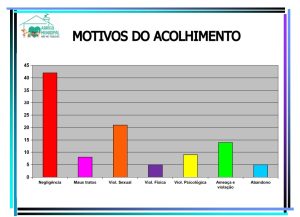 Entre os principais fatores que ocasionam o encaminhamento para o Abrigo estão: negligência, maus tratos, violência sexual, física e/ou psicológica; ameaça, abandono, uso de