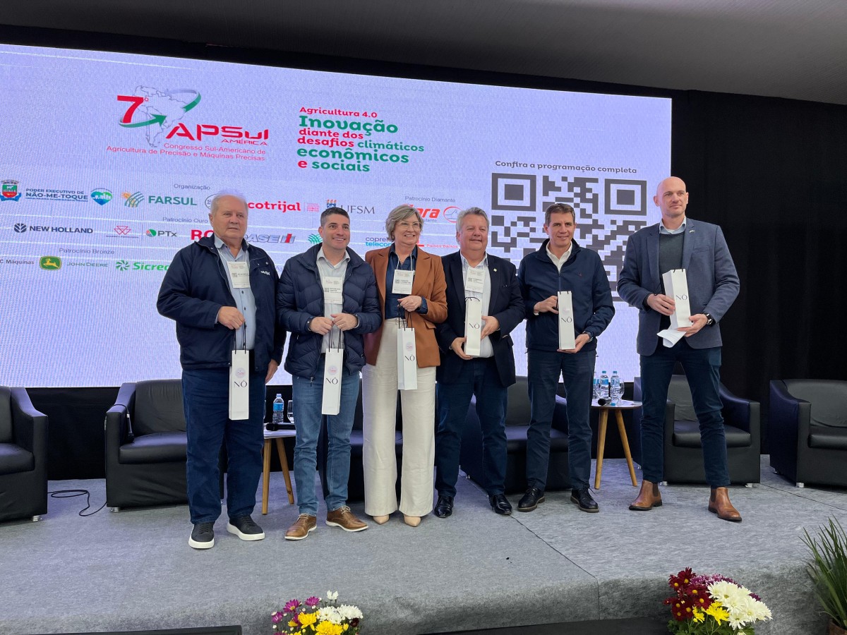 Um dos painéis apresentados pela manhã contou com a presença do Secretário de Desenvolvimento Econômico do Estado, Ernani Polo, do Prefeito Gilson dos Santos, do Assessor Agrícola dos Países Baixos, Alf de Wit, do Presidente da Cotrijal, Nei César Mânica, e do Vice-Presidente da Farsul, Domingo Antônio Velho Lopes. A mediação ficou a cargo de Teodora Berta Souilljee Lütkemeyer – Presidente do APSUL América. O tema debatido foi “Agricultura em tempos desafiadores: o papel da gestão na inovação”.